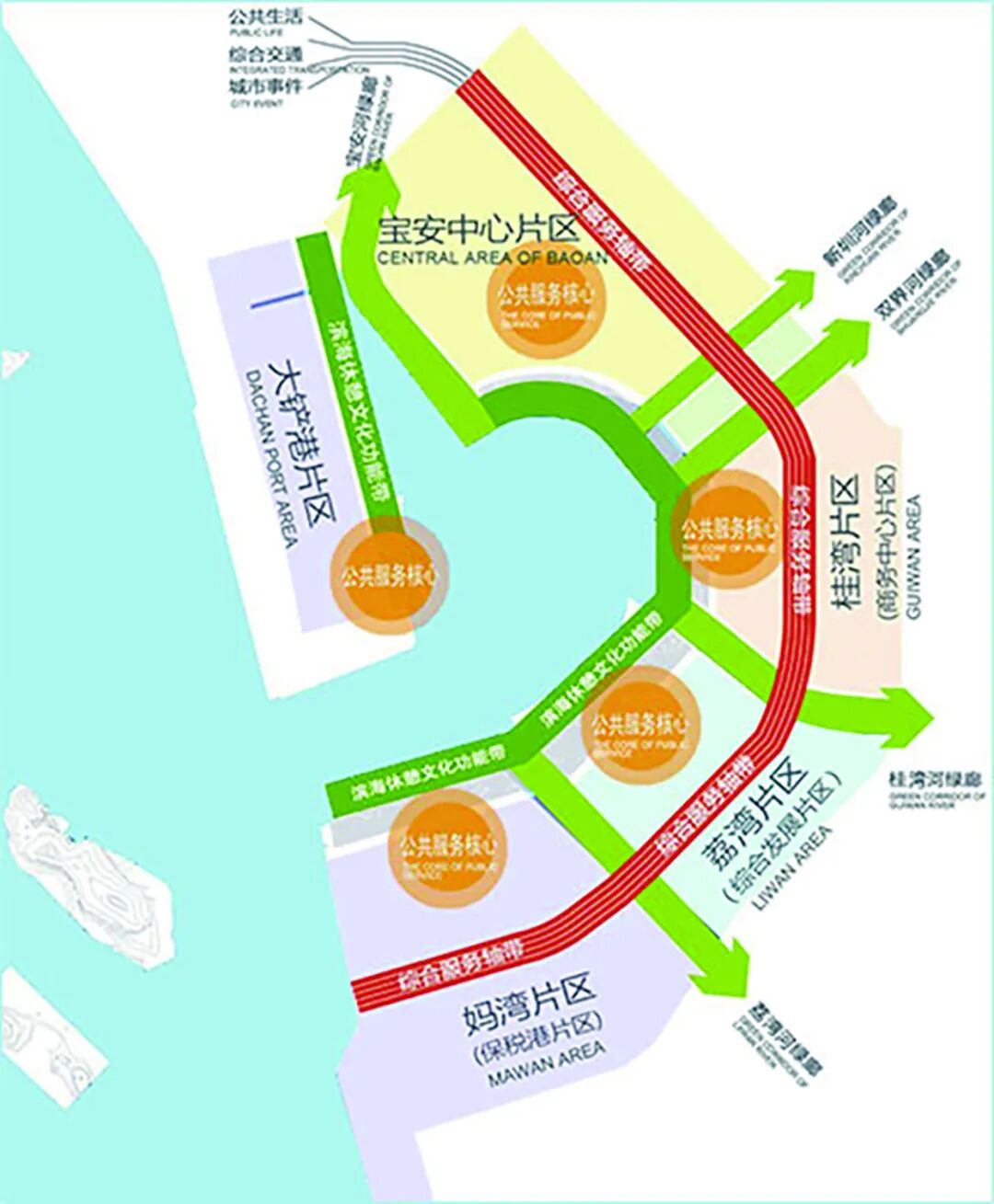 2016年的第二届绿色自贸区活动周主论坛上,深圳前海管理局官方宣布道:“前海片区规划建设的2600万~3000万平方米建筑,100%是绿色建筑,并且前海片区将打造成世界领先的绿色自贸区。”而当时已经建成的前海深港创新中心,也是中国体量最大的立体模块化办公建筑,成为我国建筑工业化4.0时代的标杆项目。从LEED(能源与环境设计先锋)绿色建筑认证角度来看,拿前海CBD中的金融核心商务区——桂湾片区举例,目前已知其出让的21宗地块中,包括香江金融中心、腾讯前海大厦、中粮亚太大厦在内的13个项目已经申请LEED认证,占比高达62%。了解前海 | 综合规划图